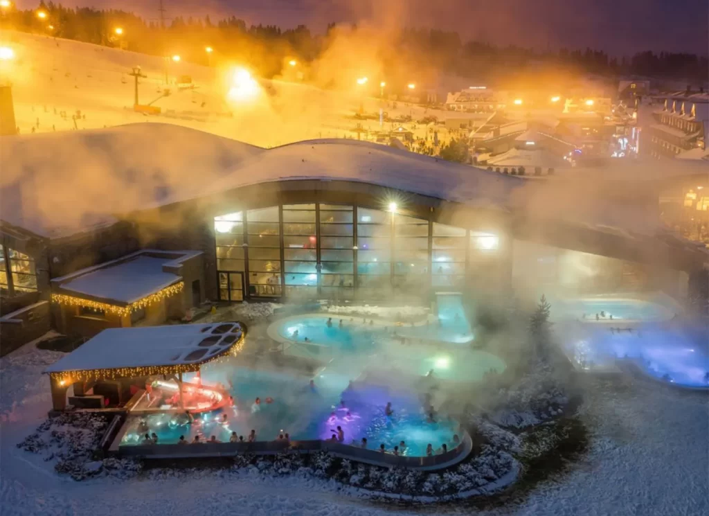 Obiekt położony przy basenach termalnych oraz stokach narciarskich.